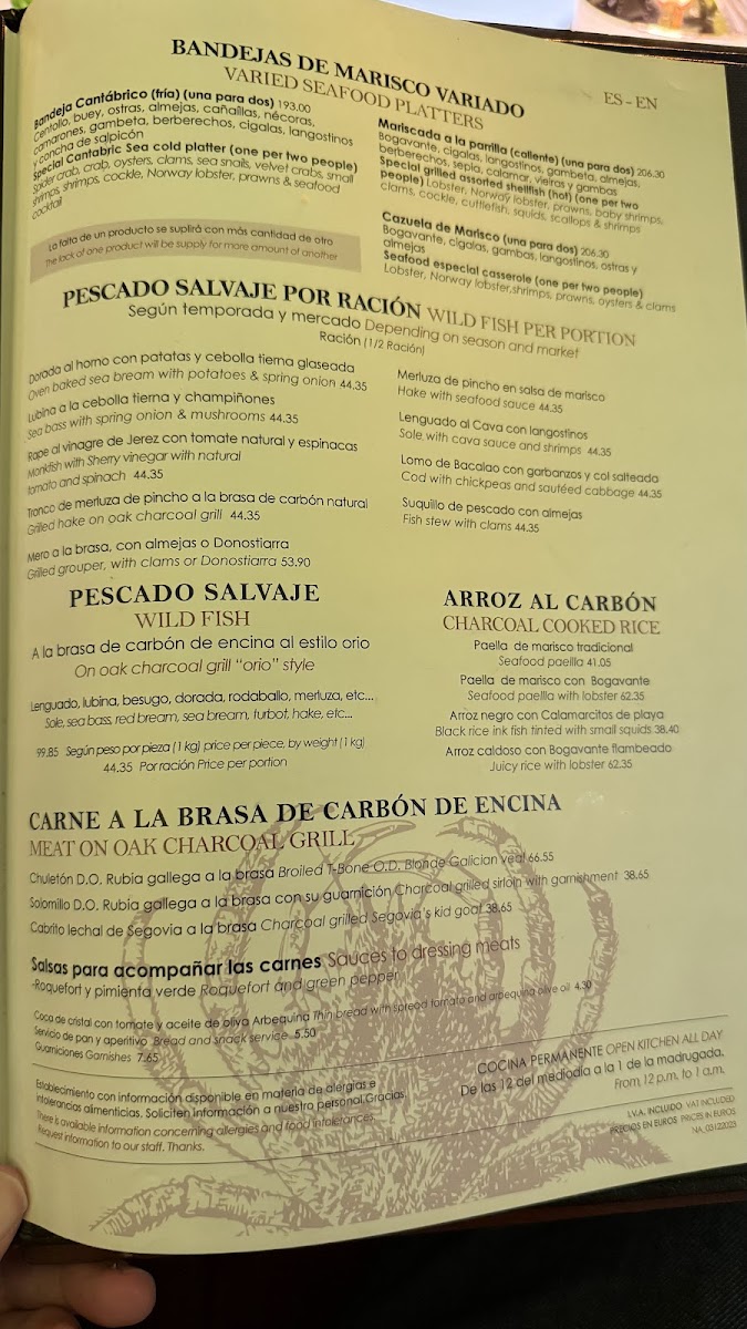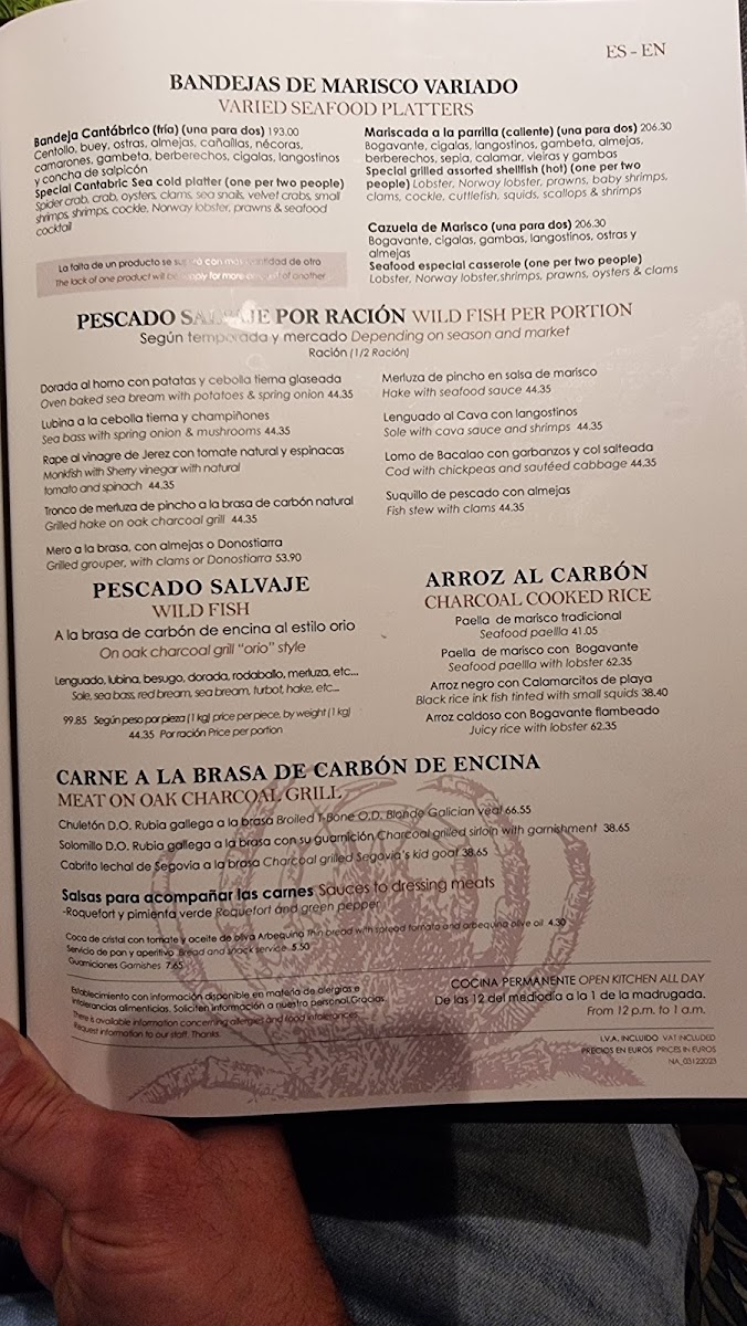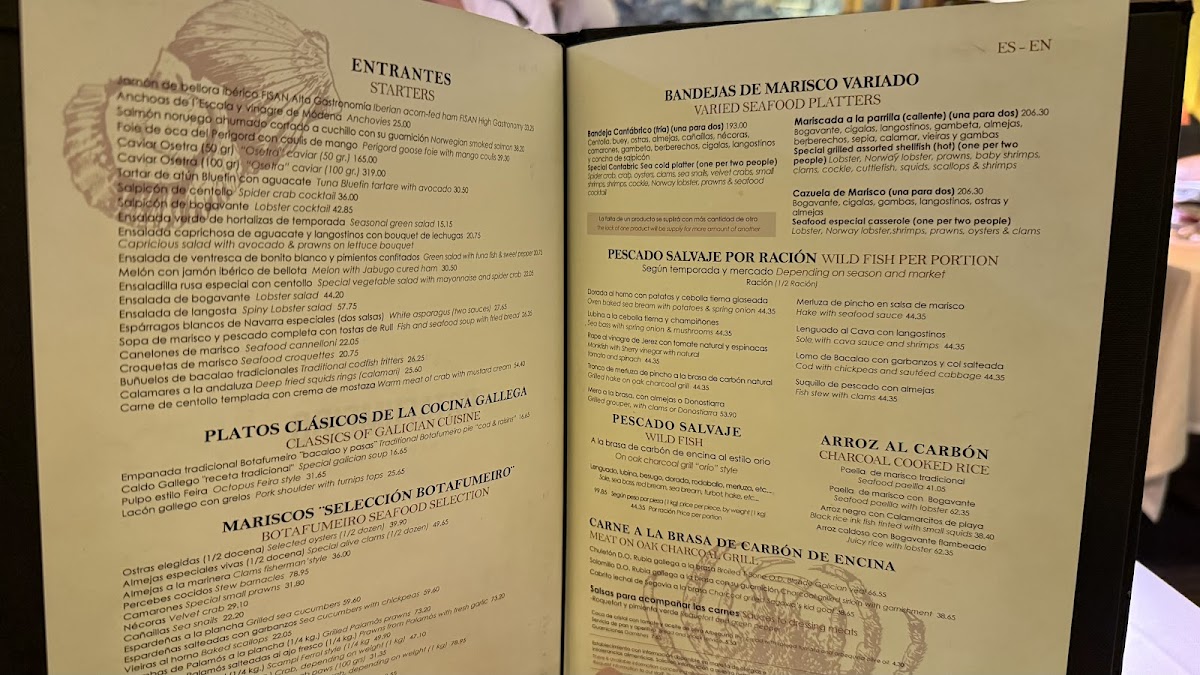 - For something satisfying and well-seasoned, steak charcoal-broiled or blonde Galician veal provides a hearty contrast to the seafood selections.